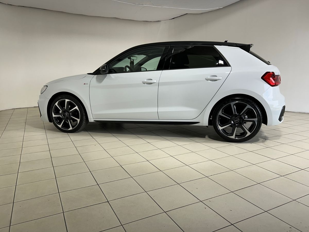 Cerchio in lega di alluminio da 18" Audi Sport, 7 razze design rotore, con finiture nero lucido, tornito lucido 7.5 J x 18 con pneumatici 215/40 R18 89Y